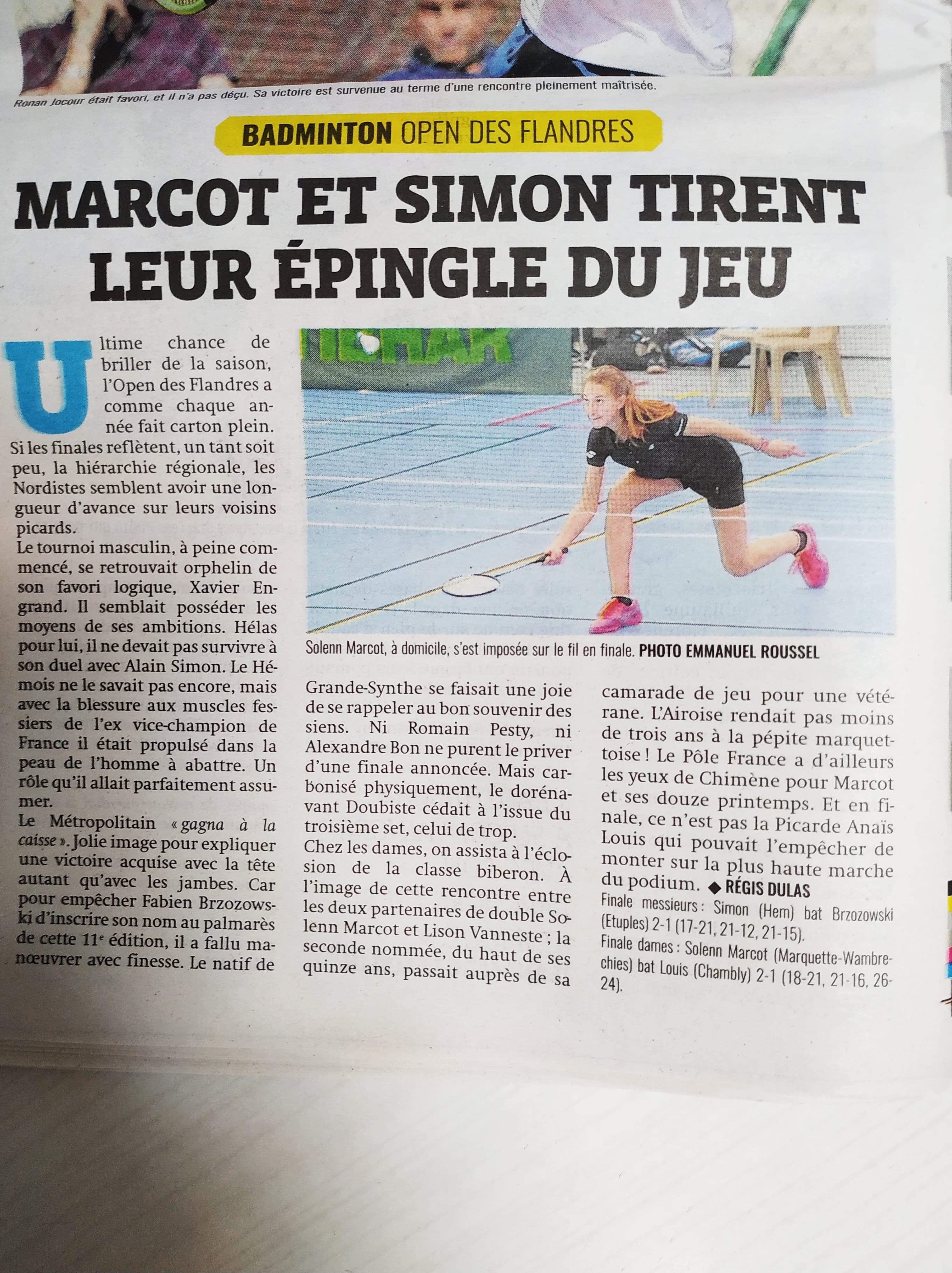 Suite à l’organisation de l’Open des Flandres, ces 15 et 16 juin 2019, un article a été publié dans l’édition du lundi 17 juin 2019, de la Voix du Nord.