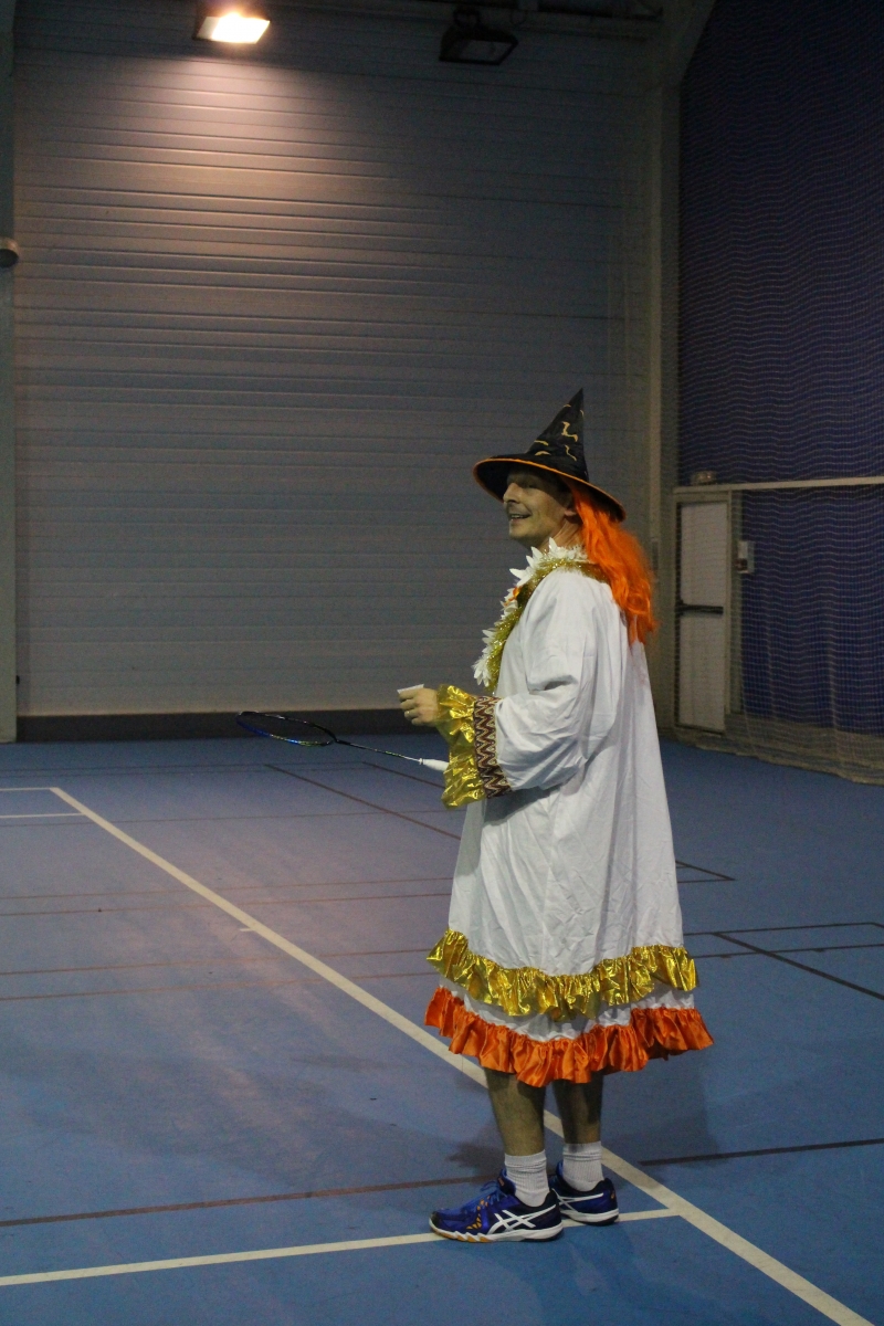 Pour autant chacun à défendu fièrement les couleurs de son équipe lors du tournoi organisé sous forme de critérium. Les rencontres, constituées d’un simple enfant, d’un simple adulte et d’un double, a permis à chacun de jouer avec entrain. Capes et déguisements ne semblent pas avoir aidé la performance des équipes, mais les chutes de chapeaux et pertes de postiches en tout genre ont permis de redécouvrir notre sport et nos terrains sous un nouvel angle. L’apéritif servi au bar a été accompagné d’une remise des récompenses, notamment celle des plus beaux déguisements.